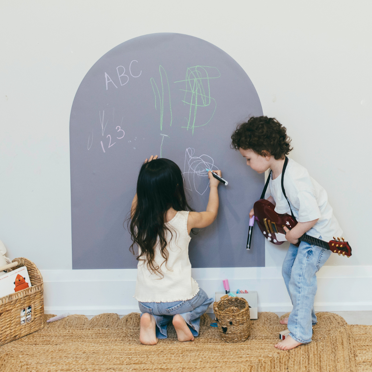 Transform your child's play space into a world of endless imagination with the new Magic Wall! This 3-in-1 magnetic chalkboard wall decal invites little ones to create, learn and explore using different mediums. Whether your little one loves to doodle, practice spelling and counting, or build magnetic masterpieces, this versatile canvas is the perfect addition to inspire countless hours of engaging, open-ended play. Peel, stick & let the magic happen!
