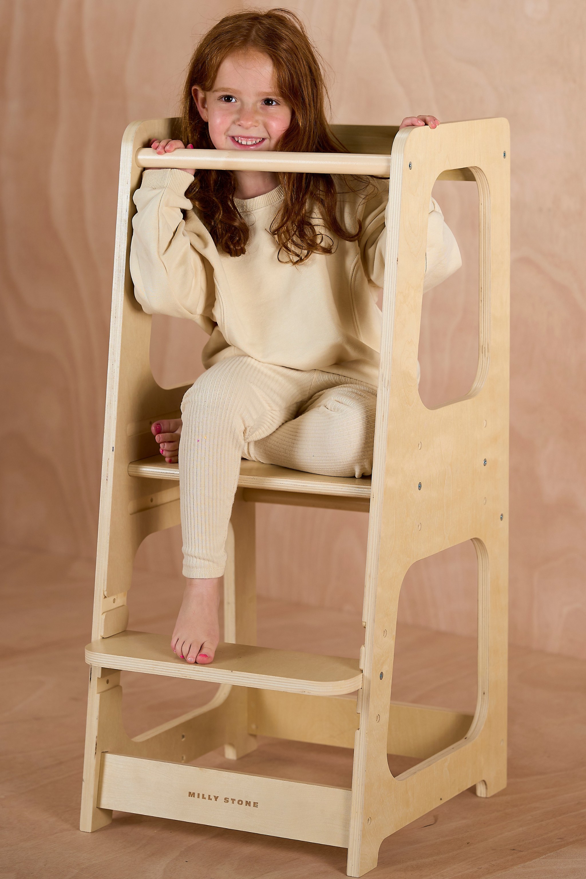 The best-selling MILLY STONE Children's Activity Tower is FSC®-Certified and thoughtfully designed to encourage confidence and connection in your toddler’s everyday routine, while building essential developmental skills. Whether they’re helping with meal prep, washing hands, or brushing their teeth, our adjustable tower boosts little helpers to counter-height, allowing them to safely and independently participate in various household activities. Returning soon to Costco, just in time for the holidays!