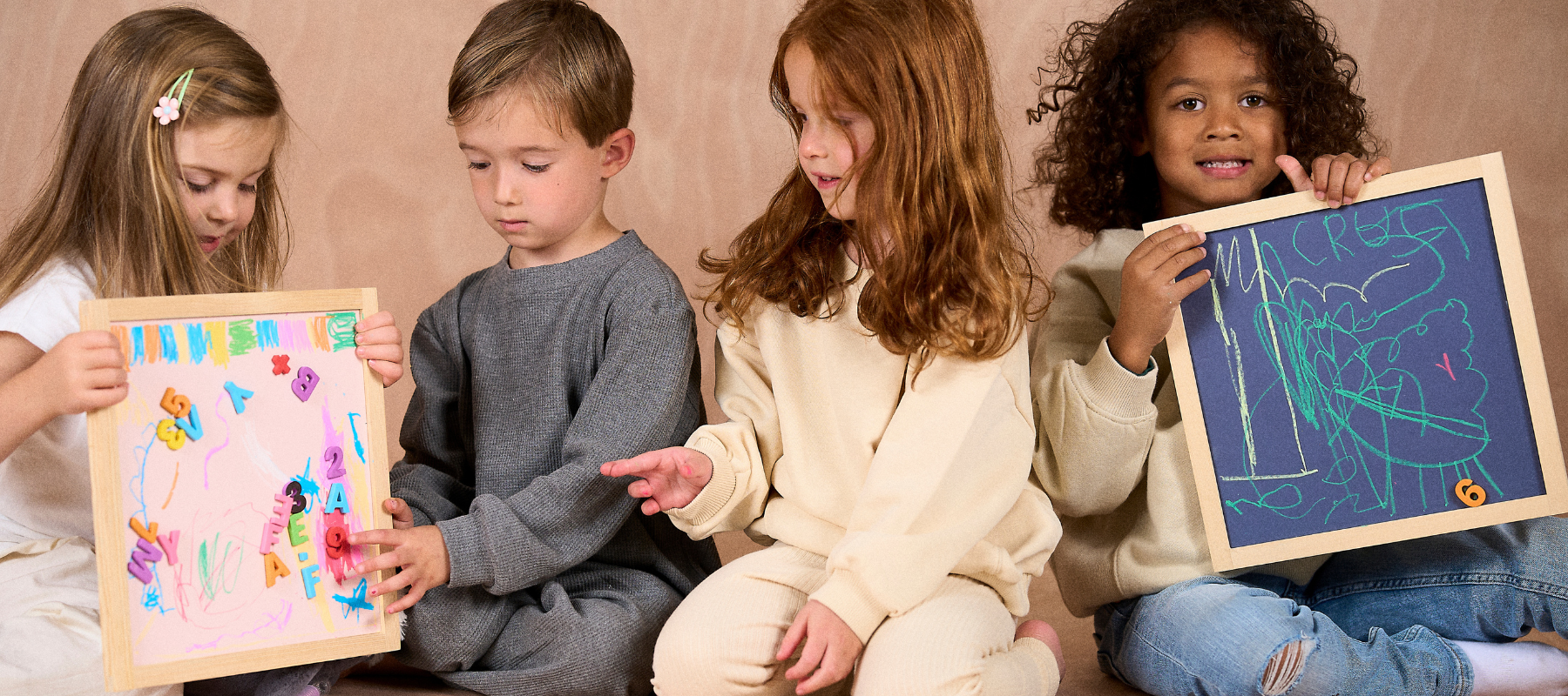 Transform your child's play space into a world of endless imagination with the new Magic Wall! This 3-in-1 magnetic chalkboard wall decal invites little ones to create, learn and explore using different mediums. Whether your little one loves to doodle, practice spelling and counting, or build magnetic masterpieces, this versatile canvas is the perfect addition to inspire countless hours of engaging, open-ended play. Peel, stick & let the magic happen!