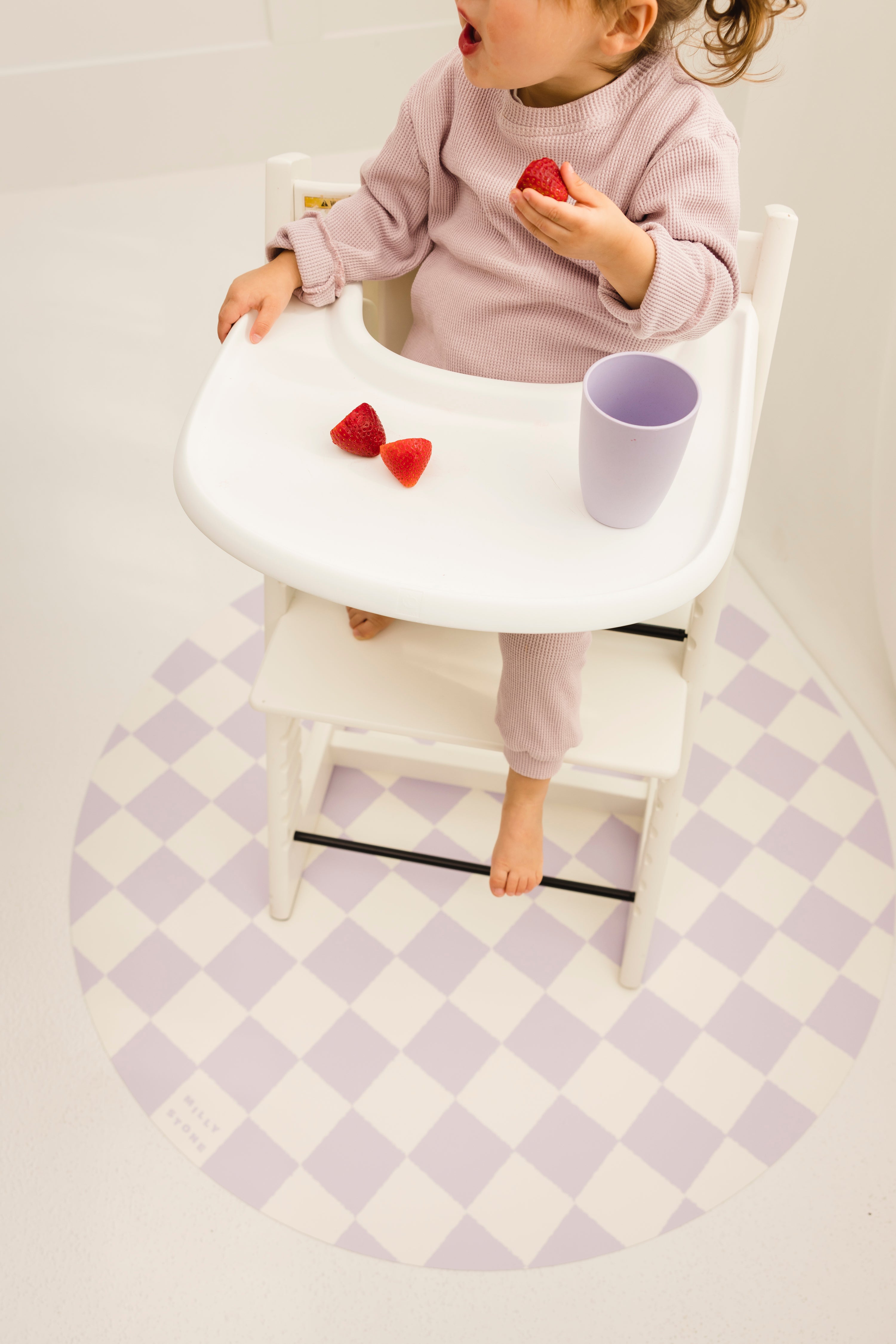 Catch All Mat for Mealtime & Playtime Mess - Lilac Checkerboard